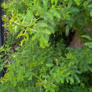 Acacia capensis. Arbol utilizado para cerco, resistente a sequia y heladas. Crecimiento rapido. Tiene espinas grandes y follaje verde.